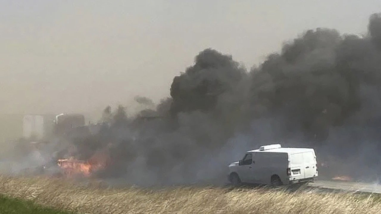 Clouds of blinding dust created by the gusts led to crashes involving 40 to 60 cars and multiple articulated lorries, two of which caught fire.